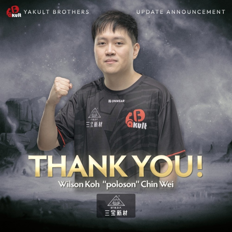 根据双方友好的沟通与协商,并在充分尊重选手个人意愿的基础上,Yakult Brothers战队的五号位选手Wilson Koh Chin Wei(ID:poloson)决定离开。我们感谢他在此期间的所有努力与贡献,回顾一起走过的历程,我们共同经历了起伏,也在深夜里一起探索新的策略与调整方向。虽然未来不能再一起并肩作战,但我们衷心祝愿poloson在接下来的旅程中一切顺利。