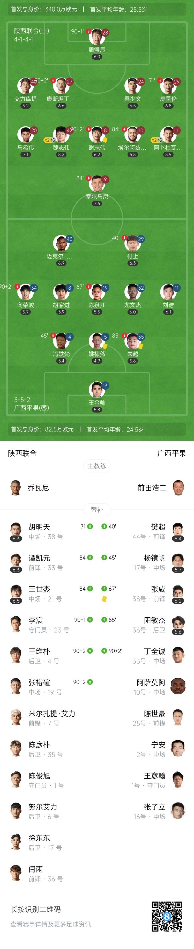 比赛的关键时刻发生在11分钟时,塞尔马尼在左路送出精准助攻,阿卜杜瓦哈普接球后迅速低射得手,陕西联合以1-0领先。接下来的第38分钟,魏志伟在中路发动快速反击,突然发力打出一记远射,足球如炮弹般射入广西的球门,比分改写为2-0。