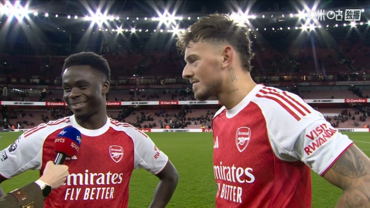 谈到队友萨卡,怀特也给予了高度赞扬,提到萨卡的表现和助攻,称他:“真为他感到高兴,恭喜兄弟,你实至名归。”这些言辞展示了怀特对队友的欣赏,以及在球队中形成的良好互动和鼓励机制。