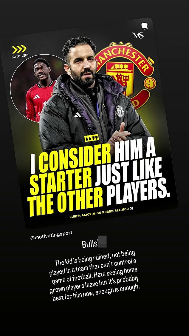 梅努的教练阿莫林在谈到这名球员时表示,他将梅努视为主力队员之一,只是最终在选择阵容时决定让他不在场上。阿莫林提到,像卡塞米罗这样之前同样没有上场的球员,后来也获得了机会。他强调,自己只想要赢得比赛,而不是关注谁能上场。