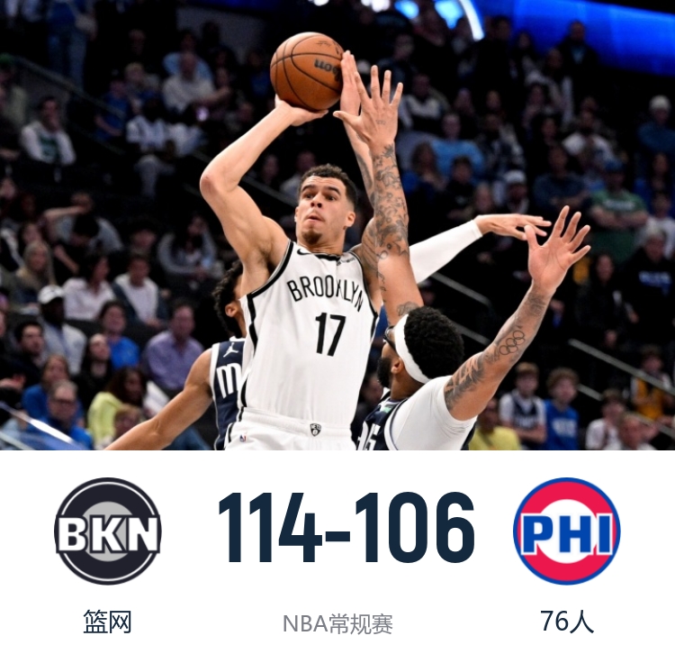 最终,篮网以114-106战胜了76人,成功在客场赢得比赛的胜利。