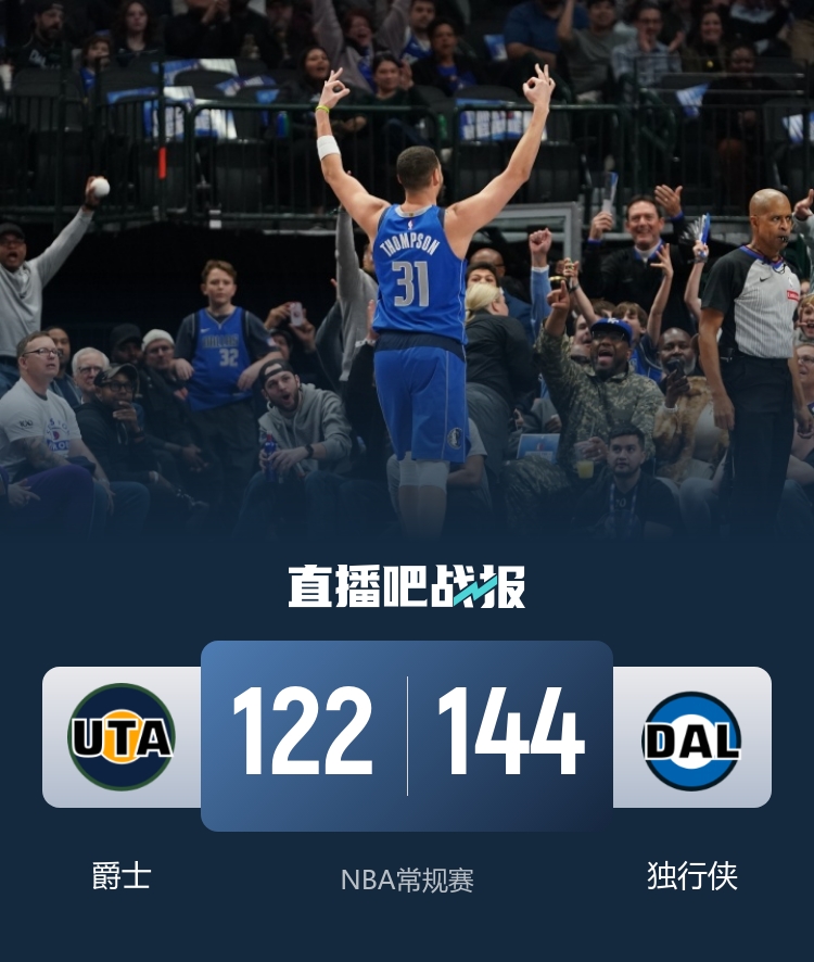 在双方的表现上,独行侠的克莱拿下全场最高的26分并贡献6次助攻,马绍尔也有22分进账。其他球员如哈迪和威廉姆斯分别贡献19分和18分,球队整体表现出色。而爵士方面,森萨博以27分成为球队的得分王,乔治和贝利分别得到17分和15分,但最终无力改变比赛的结果。