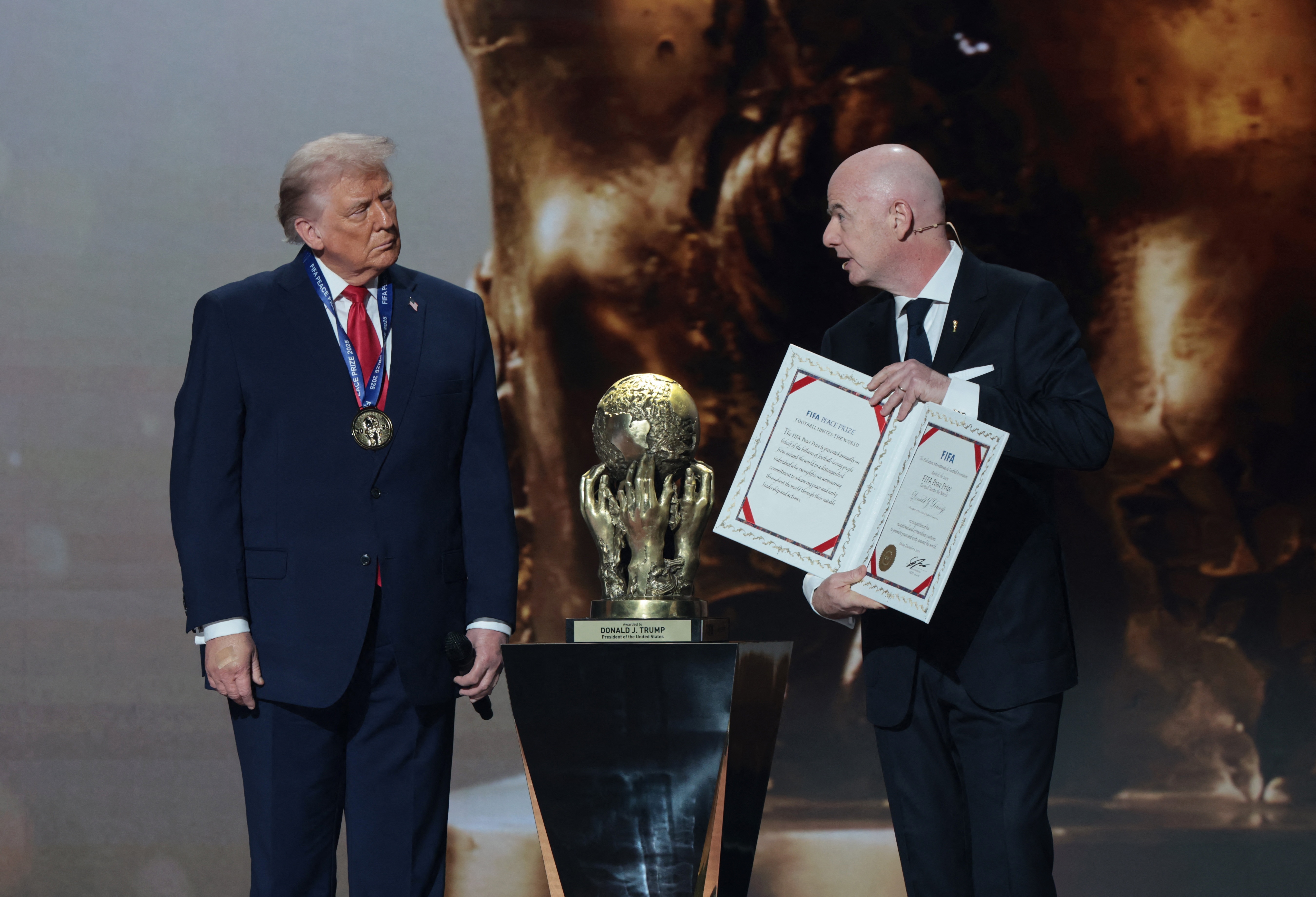 国际足联内部对特朗普荣膺和平奖的决定引发了持续的尴尬感。这一不快的情绪在组织内部已经逐渐蔓延,许多中高级官员对这个决策的反响并不乐观。回顾去年的12月,在华盛顿举行的世界杯抽签仪式上,美国总统特朗普被授予这一殊荣。在现场,国际足联主席因凡蒂诺向他表示:“我们期待看到希望、团结与未来。这是作为领导人应有的品质,你绝对配得上首个国际足联和平奖。”