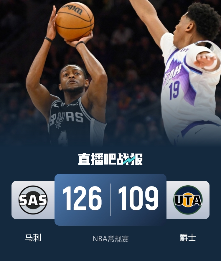 比赛的最终时刻,福克斯如同一位立马横扫千军的猛将,连续命中三记三分球,巩固了胜局。最终,圣安东尼奥马刺以126-109战胜犹他爵士,延续了他们强势的表现。