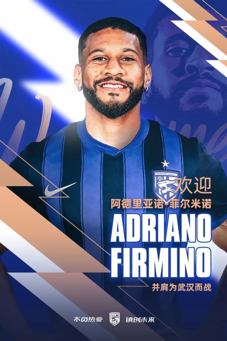 欢迎阿德里亚诺-菲尔米诺成为三镇大家庭的一员,期待他在未来的比赛中展现才能,为球队带来更多的胜利和荣耀。