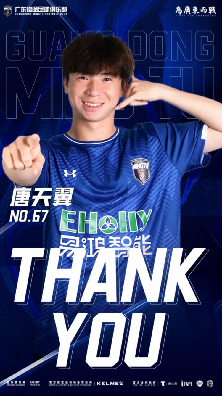 在此,广东铭途对于唐天翼所书写的青春篇章致以最深的敬意。同时,也要感谢所有一路支持他的球迷。每一段故事的结束,都是新篇章的开端,情谊并不会因离别而淡漠。愿唐天翼在未来的征途上高奏凯歌,也愿我们之间的情感在岁月的流逝中愈加醇厚,期待再会于更高的舞台之上。