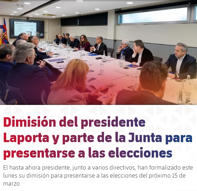 巴萨俱乐部在2月9日正式宣布,俱乐部主席拉波尔塔以及若干董事会成员已辞去职务,以便参加将于3月15日进行的选举。