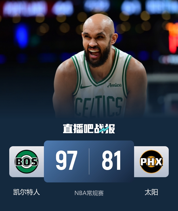 下半场开始后,比赛的局势彻底逆转,太阳队陷入了得分困境,单节仅仅收获了11分,而凯尔特人则在稳扎稳打中将分差拉开到了20分以上。尽管在最后一节,太阳试图通过连续得分缩小差距,但一切似乎都为时已晚。最终,凯尔特人轻松战胜太阳,迎来了他们的四连胜。