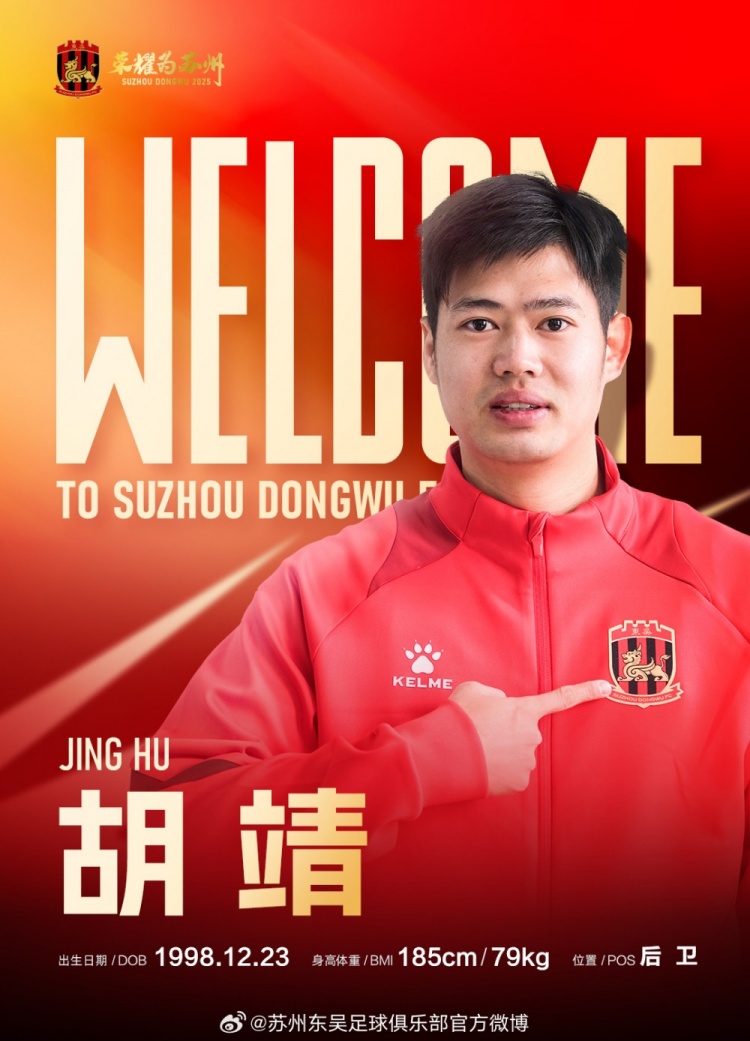 胡靖是1998年出生的年轻球员,职业生涯中他力争拼搏,曾在黑龙江冰城、成都蓉城以及重庆铜梁龙等多支球队效力,积累了相当丰富的比赛经验。2025年2月,他正式加盟苏州东吴,开启了人生的新篇章。