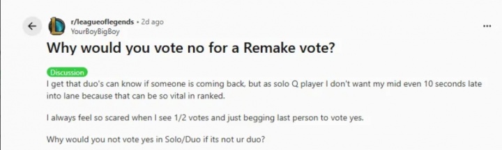 然而,问题的核心不仅仅是这投票到底有什么意义。确实,在Dota里,要是有人挂机超过五分钟,直接就可以选择离开,谁还要为这个“扔掉的棋子”心疼呢?但在《英雄联盟》里,玩家无能为力,只能眼睁睁地看着自己被迫成为四打五的炮灰。就算有可能让新玩家填补这个空缺,情况依旧是惨不忍睹。因为加入时的经济和经验相差太大,毫无竞争力可言。这就好比让人拿着一根小棒去跟拿着火箭筒的敌人对抗,怎么可能胜出?