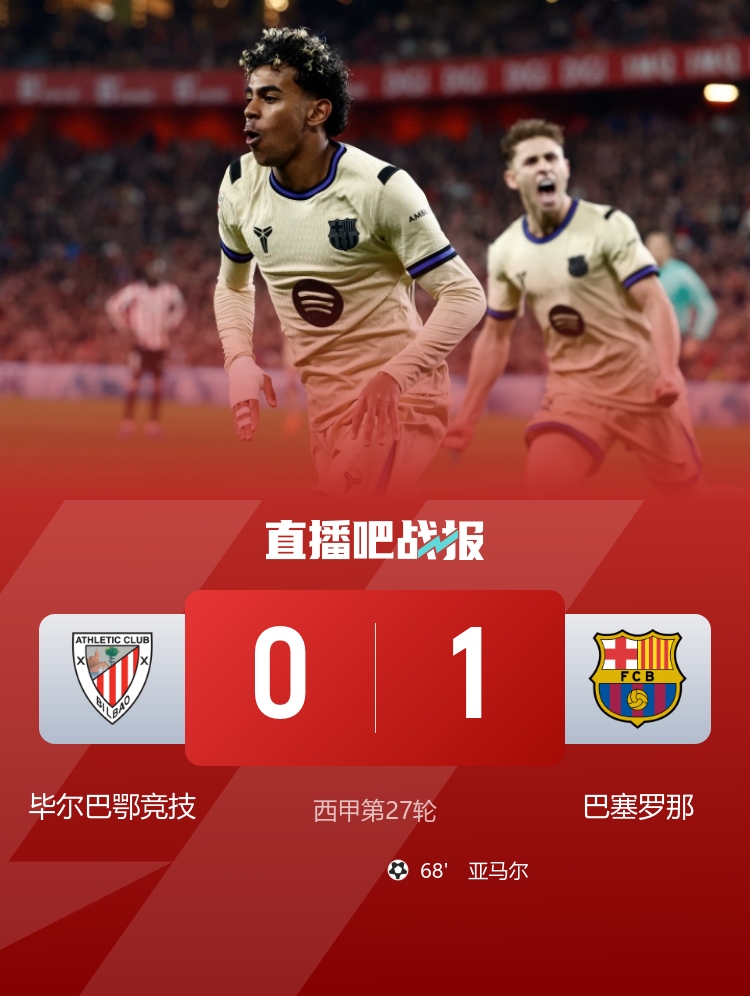 北京时间3月8日凌晨4点,2025-26赛季西甲联赛第27轮,毕尔巴鄂竞技在圣马梅斯球场迎战巴塞罗那。比赛上半场,尽管伊纳基·威廉姆斯打入一球,但因越位在先被判无效,赛果暂时为0-0。下半场,佩德里助攻亚马尔破门,巴萨以1-0小胜毕尔巴鄂竞技,继续在联赛中保持火热状态,已取得三连胜,并以4分的优势领跑积分榜。