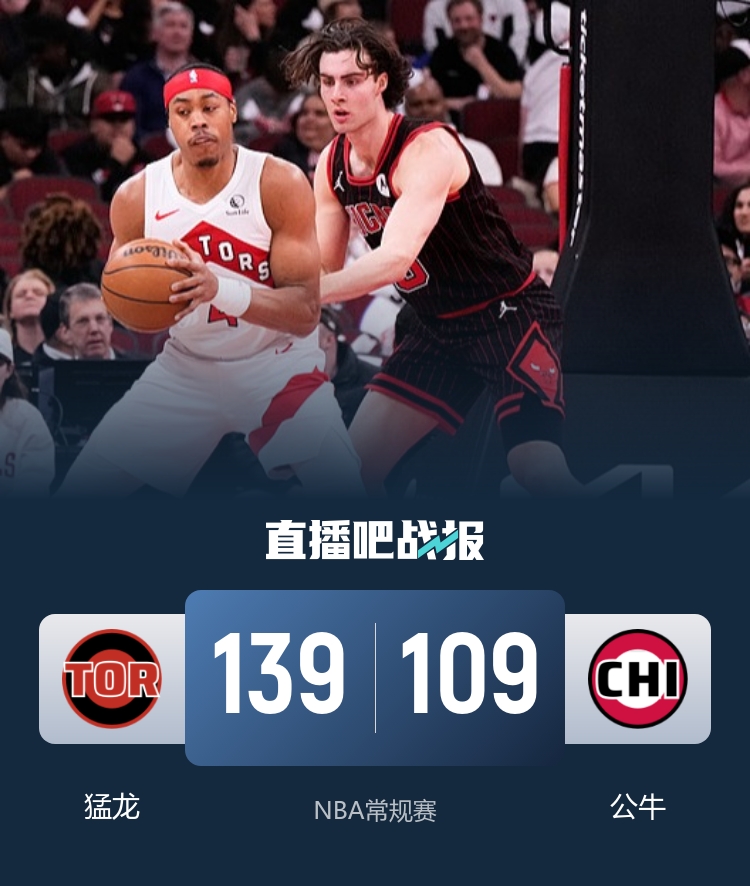 双方球员的数据也显示了实力的鲜明对比。猛龙的巴雷特拿下23分4板2助,巴恩斯和英格拉姆各得18分,不知道公牛的布泽利斯有没有想过要自己再重出江湖——19分的表现似乎是在努力掩饰队伍的窘迫。总之,这场比赛毫无悬念,猛龙就这样以轻松的姿态拍拍屁股离开,而公牛则能继续沉浸在他们的失落之中,真是一个寒冷的夜晚!