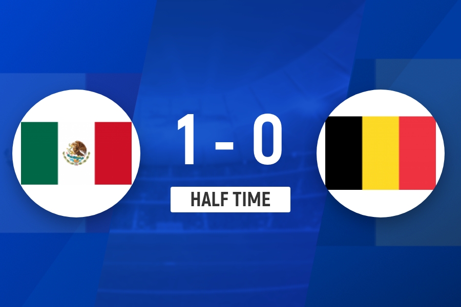 上半场补时阶段进行了4分钟,最终比分定格在1-0,墨西哥暂时领先比利时。