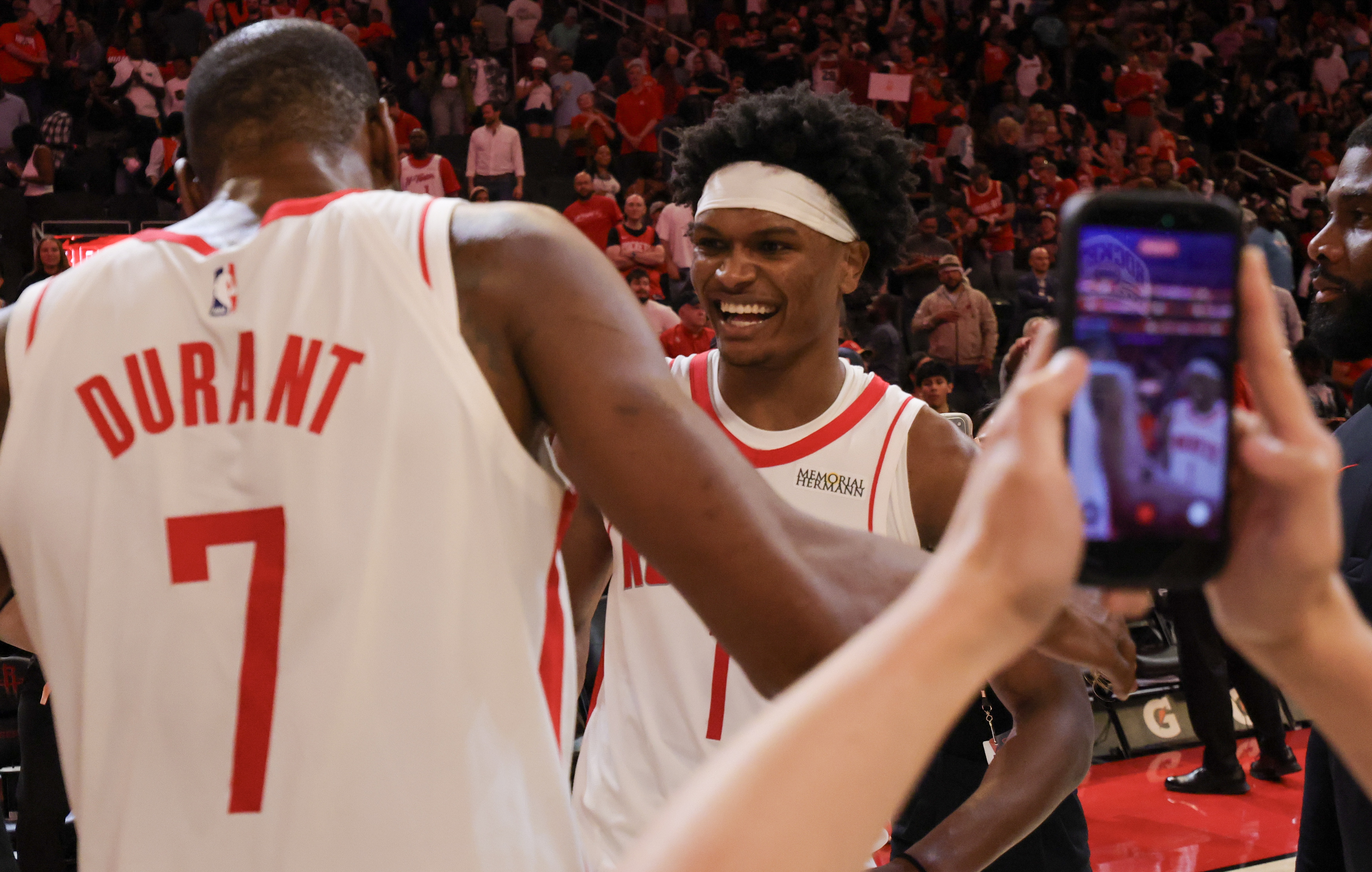 在4月11日的NBA常规赛中,火箭在主场以132-136不敌森林狼,结束了自己的8连胜。赛后,杜兰特针对阿门的出色表现接受了媒体采访。