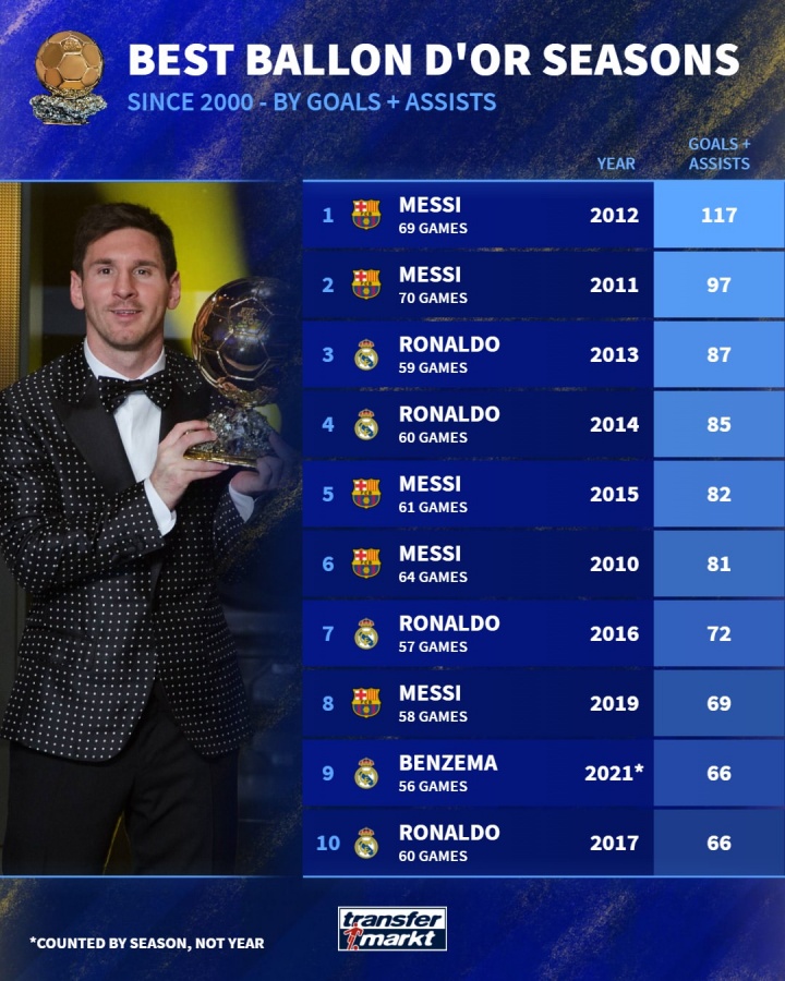 9月24日讯 2025年金球奖评选结果已经揭晓,巴黎圣日耳曼的边锋登贝莱荣膺此奖。在过去的一个时期内,梅西与C罗主导的金球奖竞争一直是足球界备受瞩目的话题。根据德国转会市场的统计,自2000年以来,金球奖得主在进球方面的表现被详细记录,梅西在2012年创造了69场117球的辉煌成绩,位列榜首。