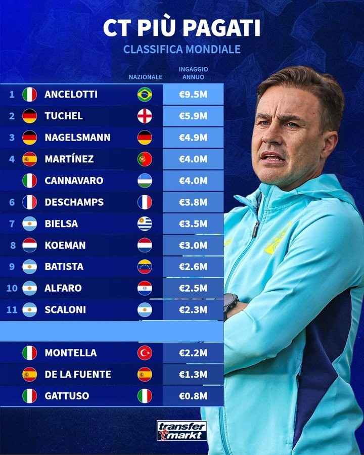 在这片绿茵场上,有一些教头不仅在战术上引领着球队,更在薪水上享受着丰厚的回报。根据德国《转会市场》的最新数据,现如今全球足球舞台上,年薪最高的国家队教练们,一如那些在光辉时刻驰骋的勇士,身价斐然。