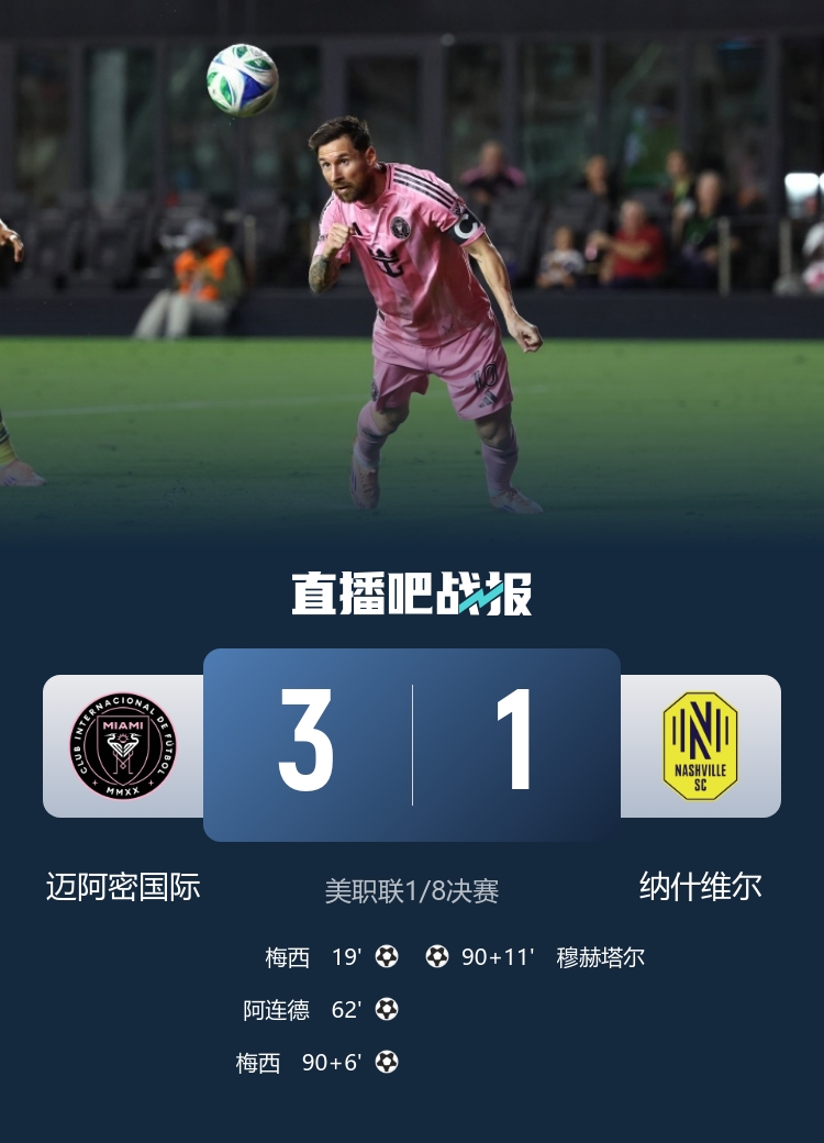 尽管纳什维尔在最后时刻由穆赫塔尔罚入任意球,将比分扳回1-3,但这并不能改变比赛的结果。比赛结束后,迈阿密国际在主场顺利取胜,获得了首回合的宝贵优势,双方将于11月2日再度交锋。