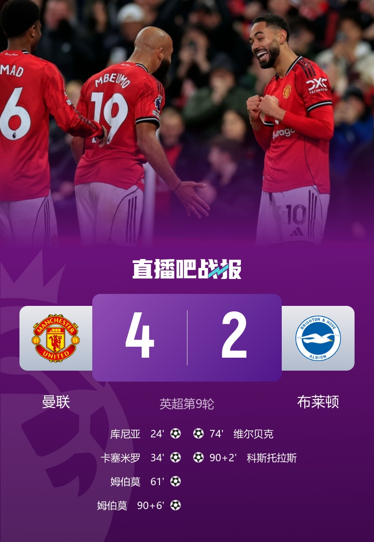 北京时间10月26日凌晨,中国球迷又一次期待已久的英超赛场上演了一场精彩绝伦的对决。曼联在主场老特拉福德迎战布莱顿,经过90分钟的激烈较量,最终曼联以4-2的分数战胜了对手,取得三连胜,状态持续回暖。