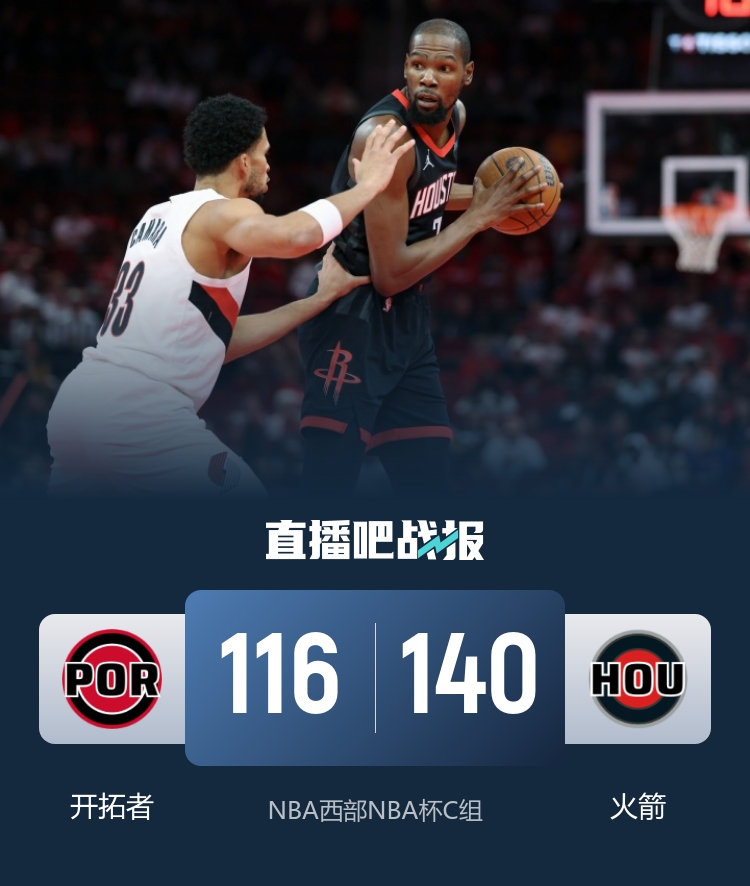 11月15日讯 NBA杯赛今日激战正酣,西部C组的休斯顿火箭队在主场迎战波特兰开拓者队。火箭队在此前的杯赛中不敌圣安东尼奥马刺,目前小组战绩为0胜1负,位居第四位。而开拓者队则获得胜利,现排名小组第二。不过火箭队的杨瀚森由于被下放而缺席本场比赛。