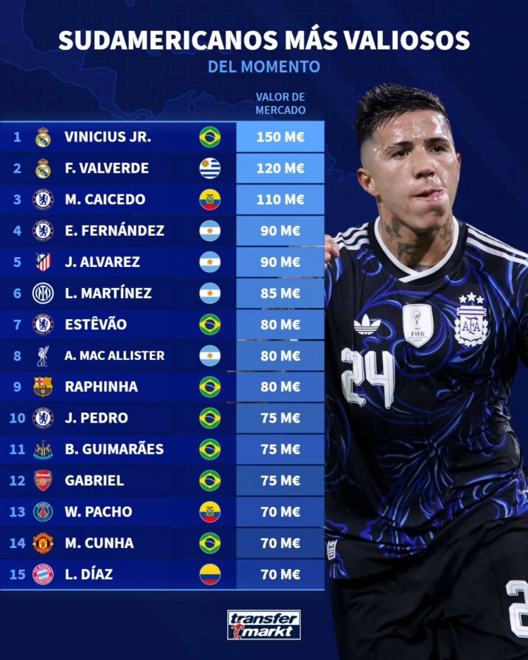 在最新的南美球员身价排行榜中,维尼修斯毫无悬念地夺得了第一个名次,身价高达1.5亿欧元。这位年轻的巴西球员凭借着在场上的出色表现和令人瞩目的潜力,成为了如今足坛的抢手货。他的速度与技巧让众多对手感到无奈,似乎在球场上总能找到破门的捷径。